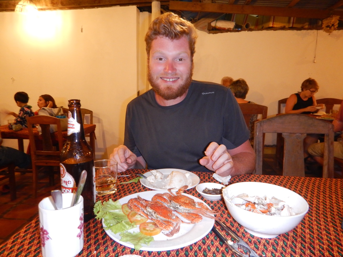 Nous quittons Kampot pour rejoindre Sen Monorom. La capitale de la région du Mondolkiri se mérite. C’est au terme d’une journée complète de bus avec changement à Phnom Penh que nous atteignons les collines sauvages de l’est cambodgien. La nuit est déjà bien tombée quand nous arrivons, nous bookons le premier hôtel venu, allons dîner puis nous coucher.