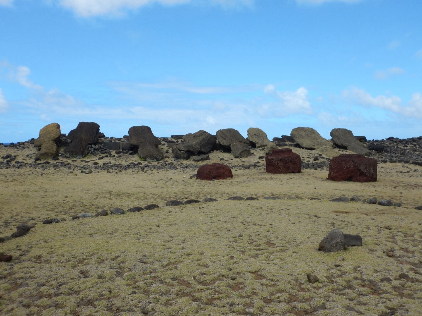 Par la suite nous feront le tour de l’île plusieurs fois afin de découvrir tous les sites intéressants. Notre première épopée en scooter nous mèneras aux Ahu (plate forme en pierre ou étaient posés les Moai) et leurs Moai renversés suites aux révoltes.