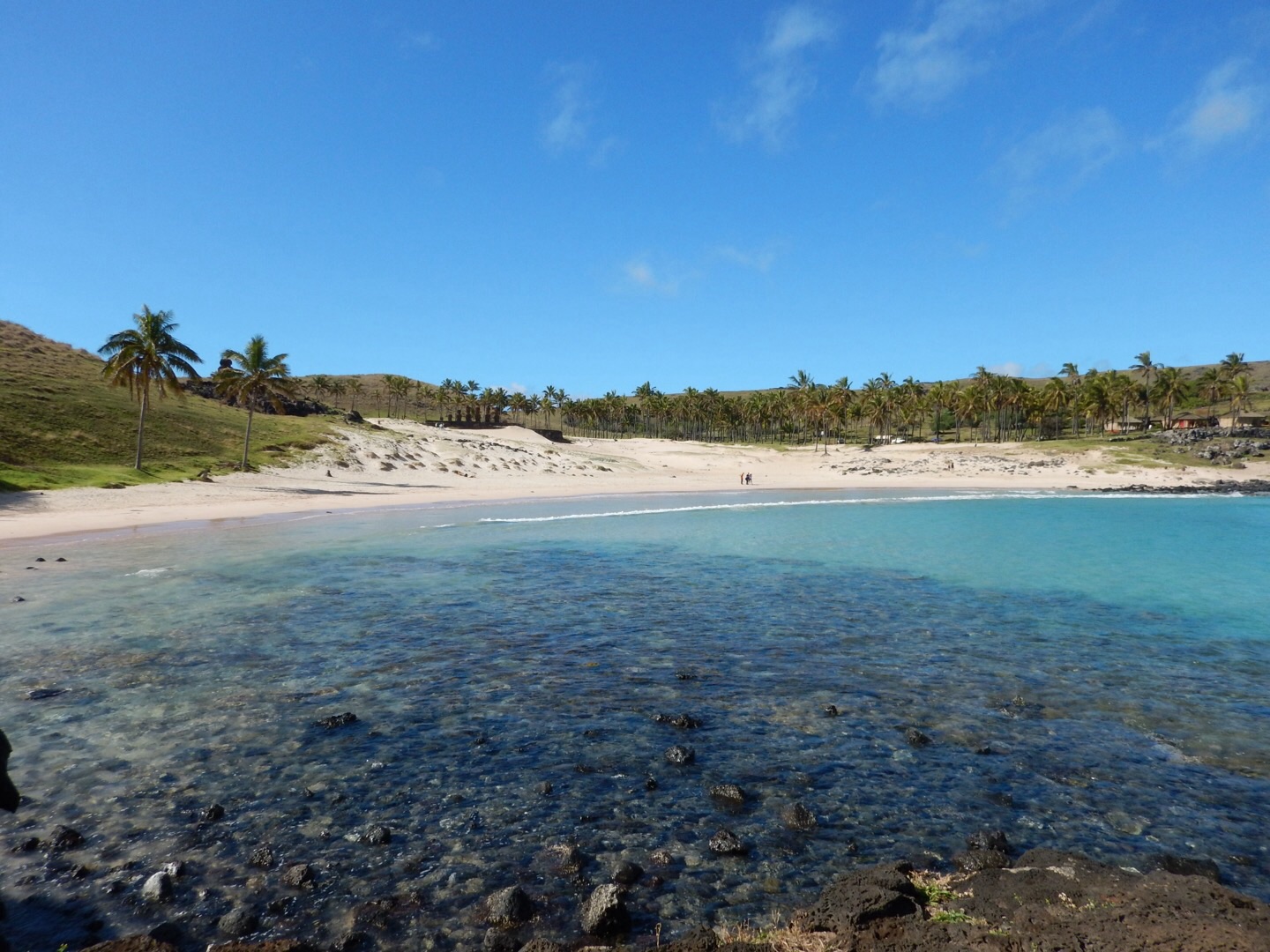 Lors d’une autre journée d’exploration, nous découvrons la plage d’Anakena au nord. C’est sur cette unique plage de l’île que la plupart des explorateurs ont accosté. Ceci en fait un lieu mythique.