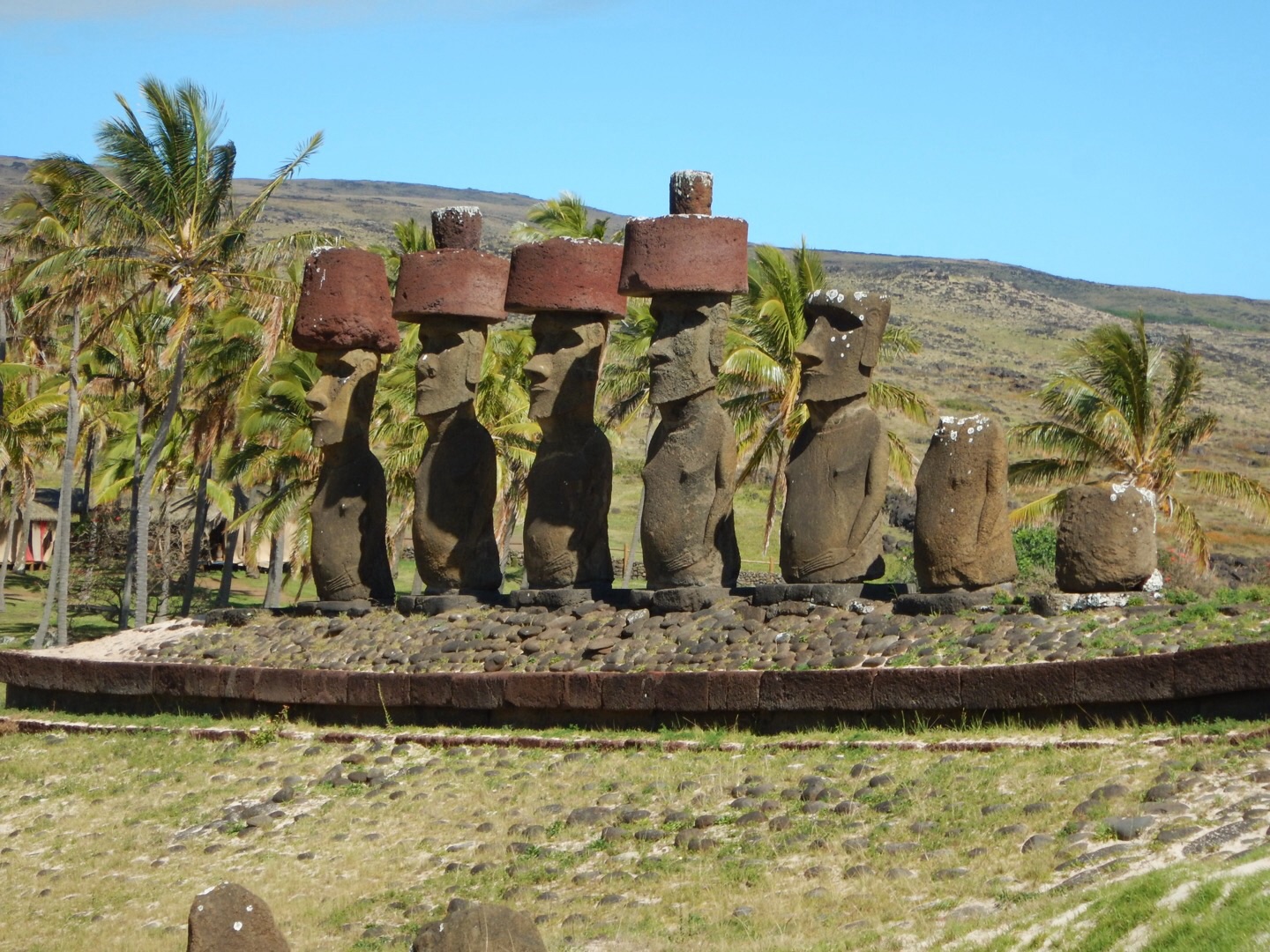 Un peu plus loin se trouve l’un des sites les plus impressionnants de l’île, l’Ahu Tongariki où sont alignés 15 moais de belle taille, dos à la mer.