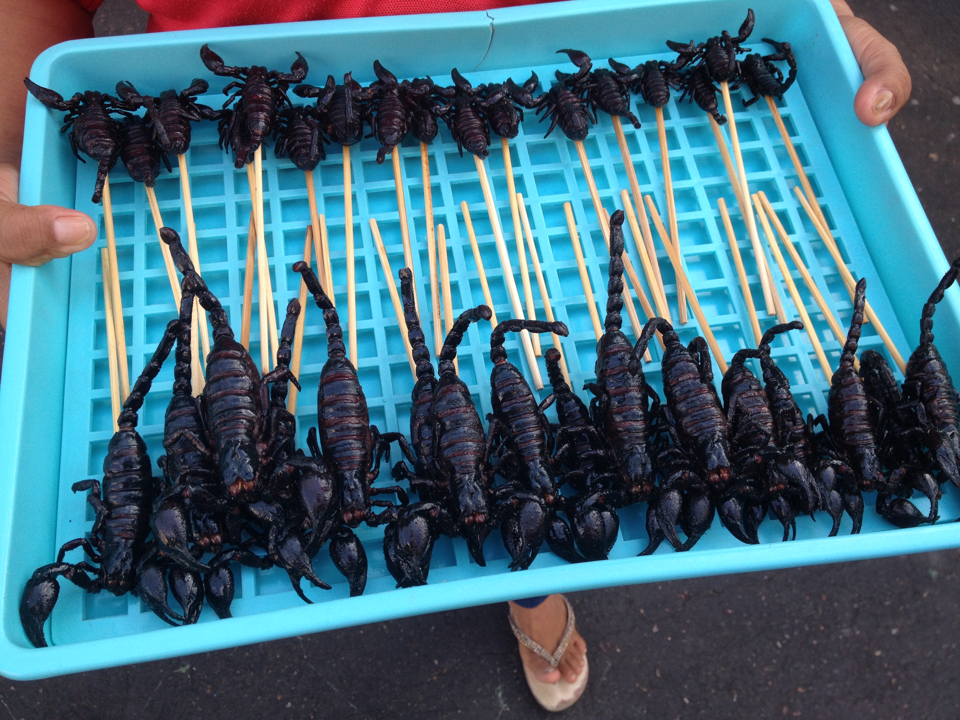 Un peu plus tard, nous visitons un marché très traditionnel où se vendent toutes sortes de mets, des plus appétissants aux plus… surprenants. Emilie y achète un short en jean pour la modique somme de 0,5€ !