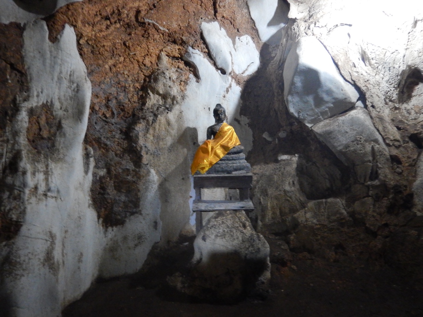 La suite de notre visite nous mène à un temple grotte où les bouddhas côtoient les formations calcaires, les chauves-souris et les tarentules !