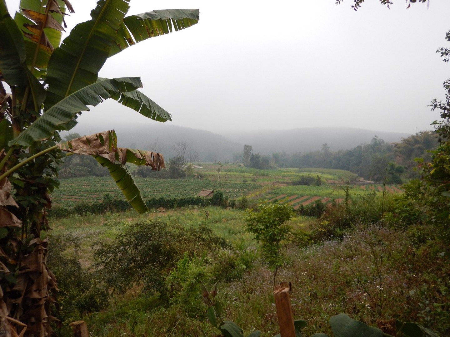 Dès le lendemain, nous partons en bus pour rejoindre une ville plus proche des villages Akhas. Il s’avère que nous avons traversé cette ville la veille. Nous aurions pu nous épargner 6 heures de bus si nous avions su… Nous déjeunons dans un premier village avant de commencer notre rando. Nous descendons et remontons des collines pentues. Nous croisons en chemin des femmes en tenues traditionnelles superbes et différentes en fonction de chaque ethnie et chaque village. Nous avons assez peu de photo d’elles. Ces peuples croient que les appareils photos volent leur âme…